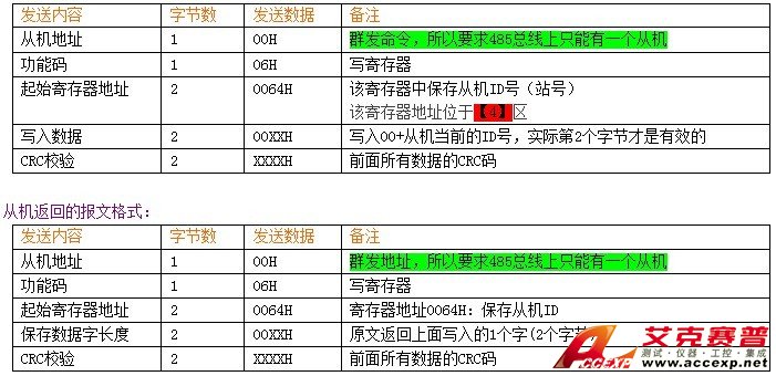例如:485總線上只掛接了一個420MA-IN4型從機,該情況下可以對其下發(fā)配置ID命令。