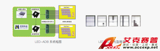 LED-ADB 系統由一個攝像頭模塊、兩個ADB 控制器模塊、兩個ADB 驅動管理模塊以及兩個ADB-LED 模組構成。