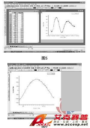 在計算機的開始程序列選項中選取OriginPro7.0程序,并選中OriginPro7.0選項,然后打開菜單欄File中ImportASCII項,鍵入所存的CSV文件名并打開,脈沖反射波形的相關(guān)數(shù)據(jù)參數(shù)將自動存入到數(shù)據(jù)列表格中。同時打開與數(shù)據(jù)列表中相應數(shù)據(jù)的波形曲線圖,見圖5。