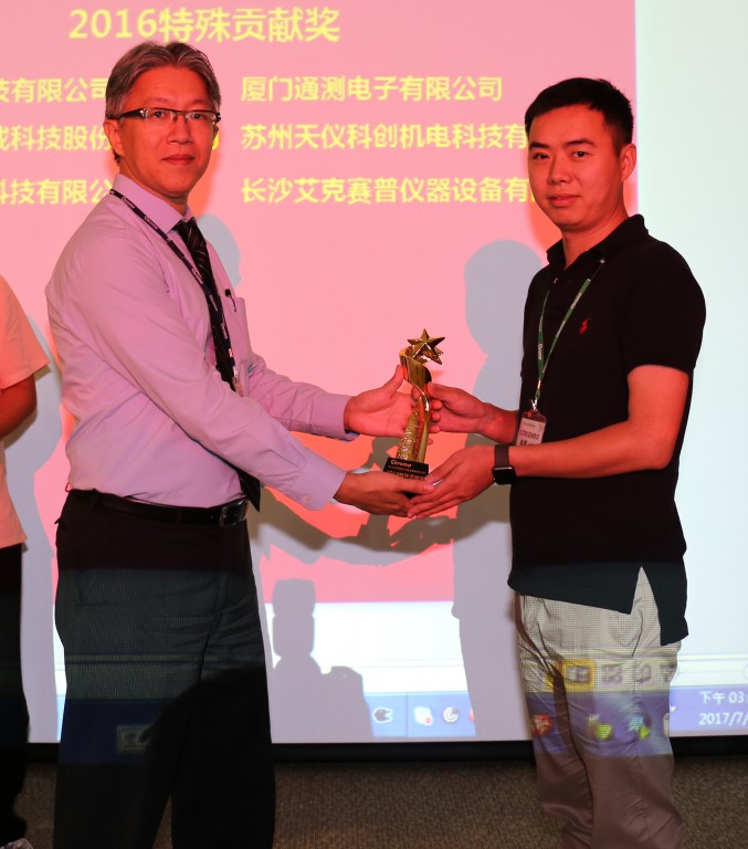 2017 7月Chroma分銷商年度大會在臺灣桃園市龜山區Chroma總部如期舉行,長沙艾克賽普儀器設備有限公司肖總經理和銷售總監王經理以優異的Chroma銷售業績獲邀參會感受Chroma產品的精準、可靠、獨特的魅力與企業文化。