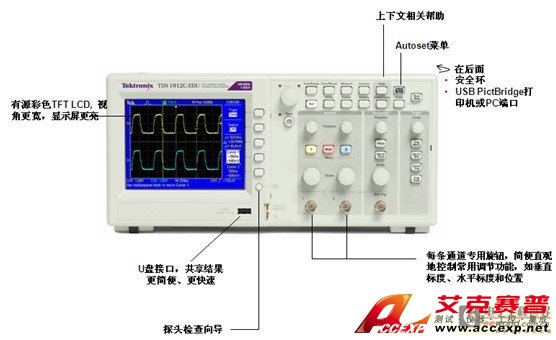 圖2:TDS1000C-EDU基于泰克經(jīng)典數(shù)字示波器平臺開發(fā),易學(xué)易用。