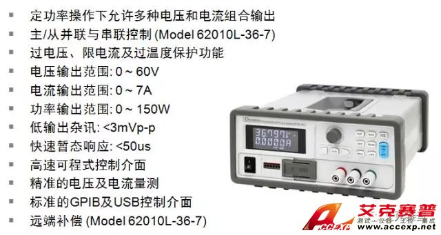 Chroma 62000L系列可程控直流電源供應(yīng)器具傳統(tǒng)Linear穩(wěn)壓器之輸出低雜訊、高速暫態(tài)響應(yīng)特性,同時具備Switching穩(wěn)壓器的輕型化、小體積及低成本等特性,提供許多獨(dú)特功能供自動化測試系統(tǒng)整合、車用電子MCU/ECU測試、半導(dǎo)體驅(qū)動電源及無線通信電源使用,是一高性價比的可程控直流電源供應(yīng)器,設(shè)計為滿足有嚴(yán)格要求的新一代電力電子應(yīng)用。