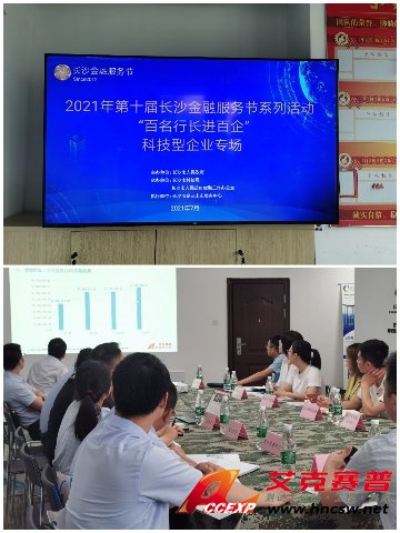 7月9日,2021年長沙金融服務節活動—“百名行長進百企”科技型企業專場來到了艾克賽普公司。活動由長沙市人民政府主辦,承辦單位為長沙市科技局、長沙市人民政府金融工作辦公室、長沙市企業上市服務中心。長沙市風險補償基金、長沙市科技風險投資公司會議在座。參加本次活動的銀行行長來自中國銀行、農業銀行、郵政銀行、長沙銀行、廣發銀行、交通銀行、星沙農商銀行、長沙農商行等十多家銀行。