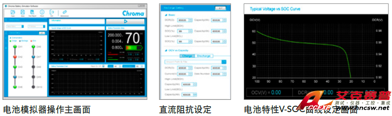 可選配電池仿真器功能,雙向電壓源可被充電或放電,可設(shè)定電池容量/直流阻抗/下載V-SOC曲線,適合使用于測試充電器、逆變器及馬達(dá)驅(qū)動器,附有電池仿真器專用軟件。