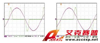當待測物有較大的輸出阻抗時,如發電機,若無自動頻寬調整功能時,電流波形會較不穩定,如圖8所示。大部分的情況下,負載電流會產生震蕩并影響測試結果的準確性。