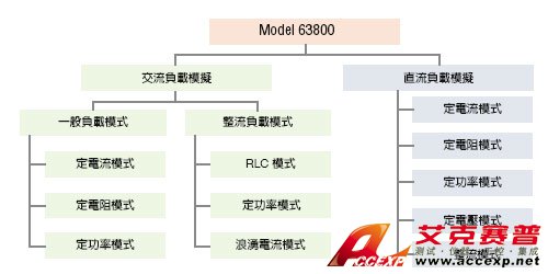 中茂 Chroma 63800 可編程交直流電子負載主要是提供交流及直流負載模擬使用。下列樹狀圖為可提供的各種負載模式。