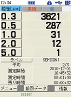 粒徑區分:5段階 (0.3μm、0.5μm、1.0μm、2.0μm、5.0μm以上)