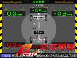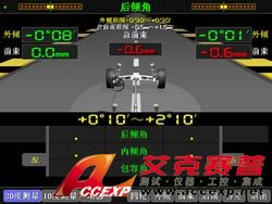 測量系統:外傾角設計了以車輪傾斜和顏色的變化來區分;總前束、獨立前束設計了以車輪的變動和顏色來區分