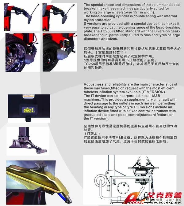 M&B TC-528拆胎機是新一代的拆輪胎設備為市場上的所有輪胎提供最好的安裝和拆卸功能。特殊需求的原因在于輪胎和輪輞的不斷變化(EMT, RFT,CRS,DSST,PAX等),要求M&B TC-528拆胎機專門研究。在這些模式中,M&B TC-528拆胎機在解決問題和建立質量標準方面起著重要作用。