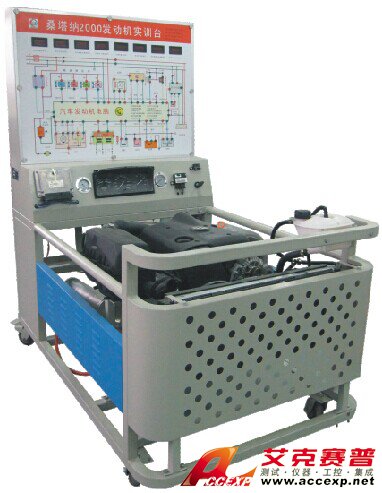 桑塔納3000發動機總成、原車發動機控制電腦、組合儀表、防盜電腦、發動機起動運行所有相關的原車附件、故障設置和排除系統、原車電路原理圖板及檢測端子、60AH大容量蓄電池、大容量不銹鋼油箱、發動機加速機構、控制面板柜、可移動臺架、臺架電源總開關、OBD診斷座、散熱系統、任務驅動教學模式的實訓指導書及臺架操作說明書。