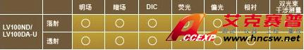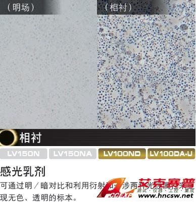 可支持多種觀察方法:明場、暗場、偏光、微分干涉、落射熒光和雙光束干涉測量觀察功能。此外,LV100DA和LV100DA-U還可提供透射型微分干涉、暗場、偏光和相襯觀察功能。