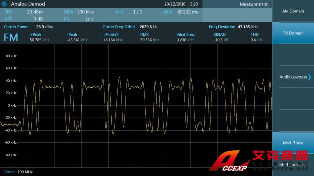 基本數(shù)字調(diào)制格式被用于多種應(yīng)用,例如近場(chǎng)通信。R&S FPC 支持 ASK 和 FSK 分析。數(shù)字調(diào)制顯示屏包括軌跡、眼圖、調(diào)制誤差和符號(hào)分析。此外,還提供低功耗藍(lán)牙 (Bluetooth LE) 和胎壓監(jiān)測(cè)系統(tǒng) (TPMS) 的專有配置預(yù)設(shè)。通過內(nèi)置揚(yáng)聲器或耳機(jī)插孔支持解調(diào)音頻。