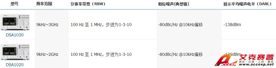 •顯示平均噪聲電平(DANL)-120dBm(DSA1020)