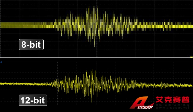 目前許多移動(dòng)電子產(chǎn)品設(shè)計(jì)都朝著低功耗、低電壓電子系統(tǒng)的趨勢(shì)發(fā)展,因此對(duì)數(shù)字示波器等測(cè)試測(cè)量?jī)x器的精度也提出了更高的要求。12-bit高分辨率示波器的量化誤差比普通的8-bit示波器小16倍,能助力工程師更完整清晰地觀測(cè)到波形的細(xì)節(jié),并進(jìn)行更精準(zhǔn)的波形測(cè)量。