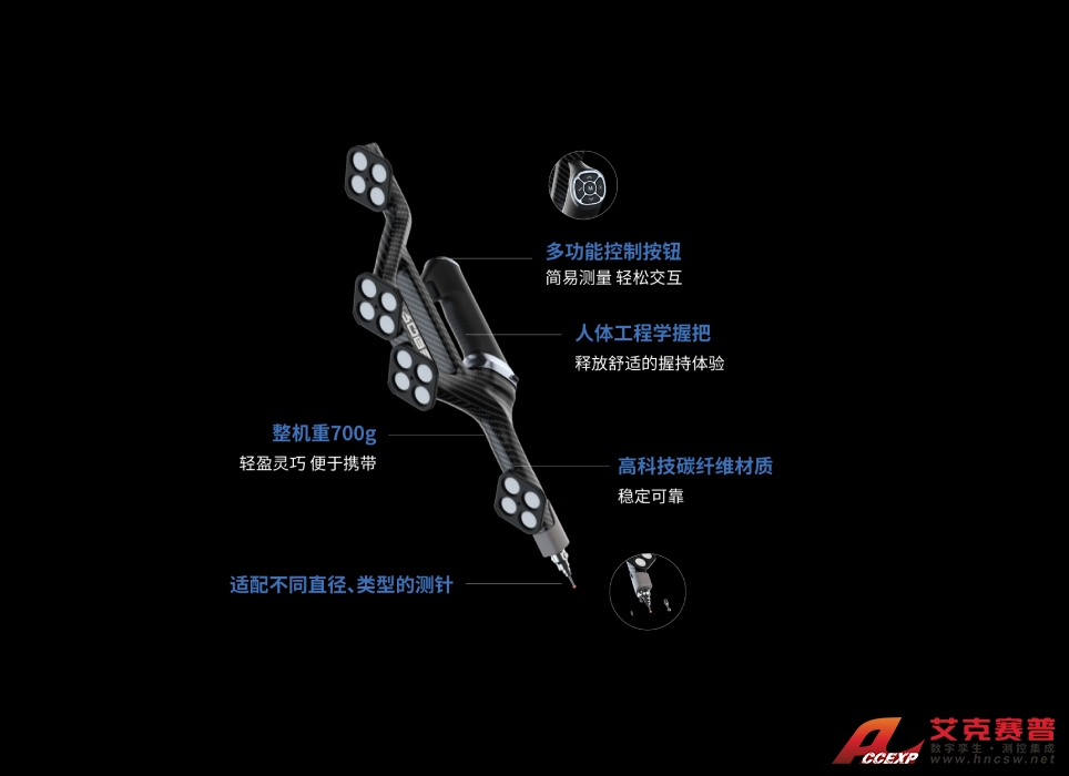 航天級(jí)碳纖維材質(zhì)掃描儀i-Scanner,球形設(shè)計(jì)結(jié)構(gòu),堅(jiān)固耐用;搭配一體式人體工程學(xué)控制握把,便于長(zhǎng)時(shí)間單手靈活移動(dòng)掃描儀,讓技術(shù)人員在不同的測(cè)量場(chǎng)景中,更加敏捷自如,帶來人機(jī)合一的掌控感。