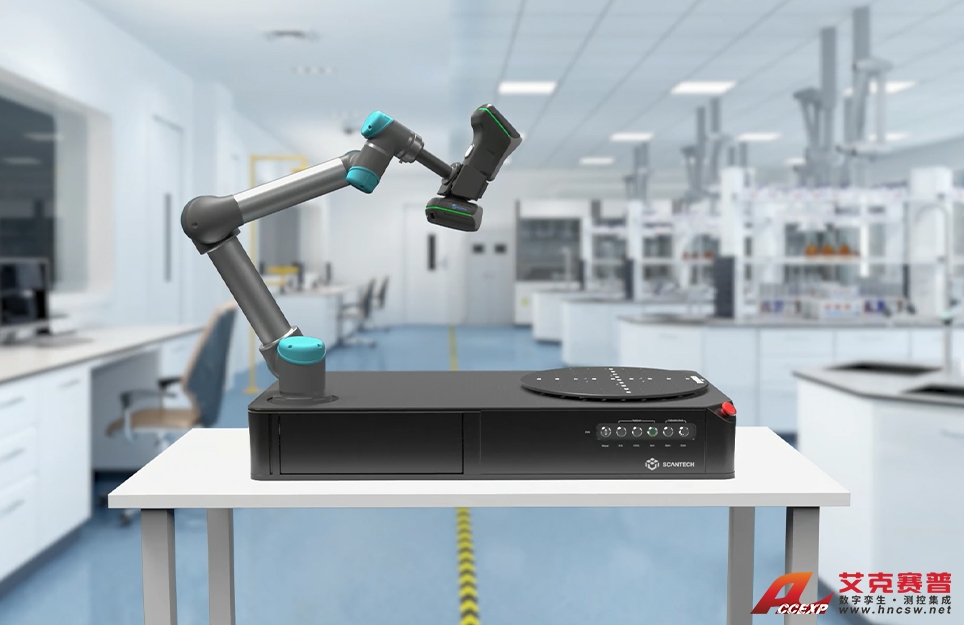 AM-DESK全能型自動化三維測量平臺,由智能控制系統、多個伺服運動機構、安全系統、運動控制軟件、測量分析軟件、SPC批量分析軟件構成,設計緊湊,輕松部署,可拓展性高。支持不同品牌型號協作機器人,可搭載SCANTECH全系列三維掃描儀,融入工廠車間、實驗室及其他高強度工作環境,應對不同零件的自動化檢測需求,保持高精度連續性三維測量。平臺安全穩定,符合歐標CE認證要求,有多種安全防護硬件,保障安全作業。多樣配件提供不同搭配可能性,可實現不間斷測量及各類特殊零件的自動化三維測量。SCANTECH自動化軟件FlexScan,界面簡潔,簡單易學,人機交互清晰明了;內置多種通訊模式,支持多種機器人,可根據現場不同布局,適應多變位機的自動測量。